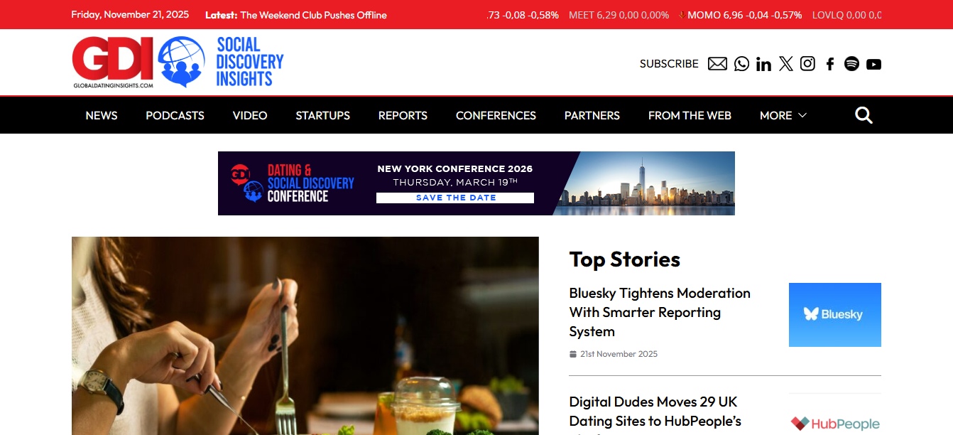 Global Dating Insights (GDI) is a digital publication dedicated to delivering up-to-date news, in‑depth analysis, and thought leadership in the global dating and relationship industry. From emerging dating technology and apps to market trends, consumer behaviour, and regulatory developments, GDI serves as a go‑to resource for professionals, investors, operators, and enthusiasts in the dating sector.